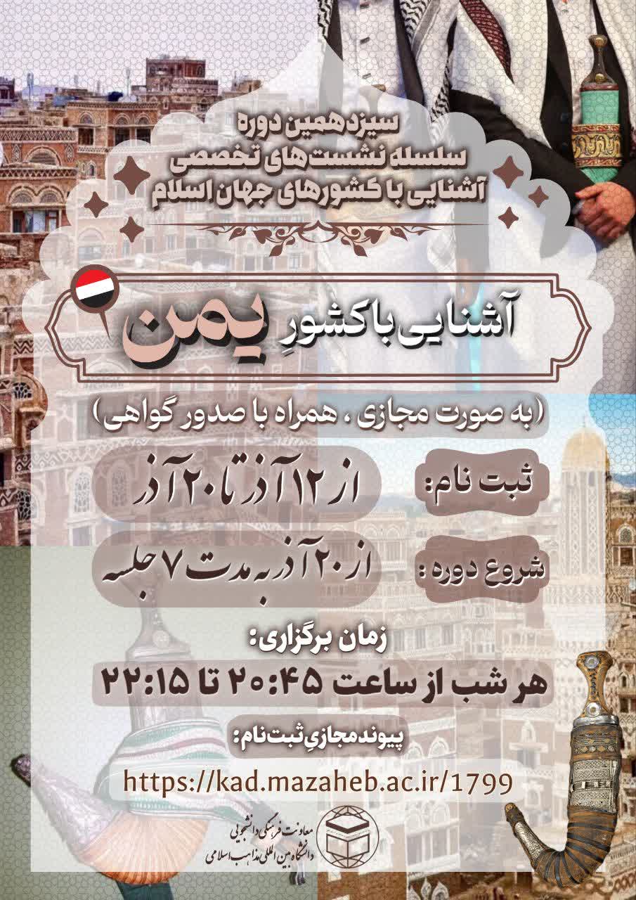 آغاز ثبت نام دوره سیزدهم آشنایی با کشورهای جهان اسلام؛ آشنایی با کشور یمن