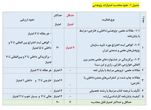 13. دارا بودن گواهی پذیرش یک مقاله علمی-پژوهشی مرتبط با پایان نامه از مجلات مورد تایید وزارت علوم الزامی است.